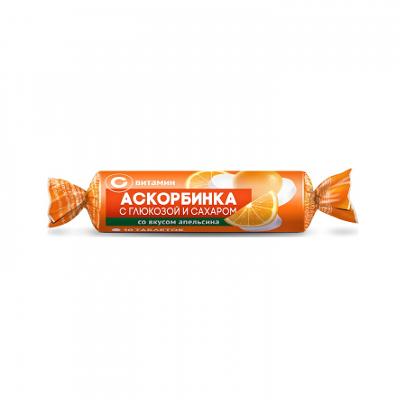 Аскорбиновая к-та с глюкозой бад таб. апельсин 100мг №10