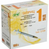 Шприц СФМ инсулин 3х комп 1мл №100 (U100 26G 0,45х12)