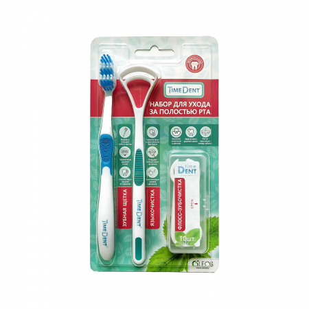 ТаймДент/Timedent набор з/щетка д/взрослых средняя+языкочистка+флосс-зубочистки N10